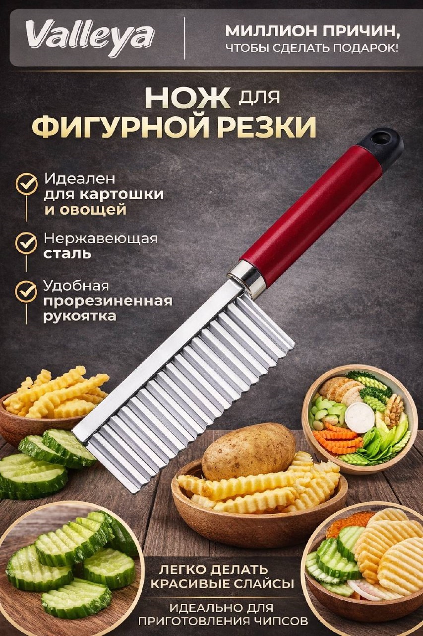 Быстрый просмотр Нож-слайсер рифленый для картофеля фри дерев ручка *200 Код: 091165 в наличии 125 c Быстрый просмотр Нож-слайсер рифленный *500 Код: 078873 в наличии 59 c Быстрый просмотр Ролик-пресс для вырезания кружков из теста 9х17см Код: 090036 в наличии 151 c Быстрый просмотр Тесторезка с мет ручкой *240 Код: 095004 в наличии 110 c